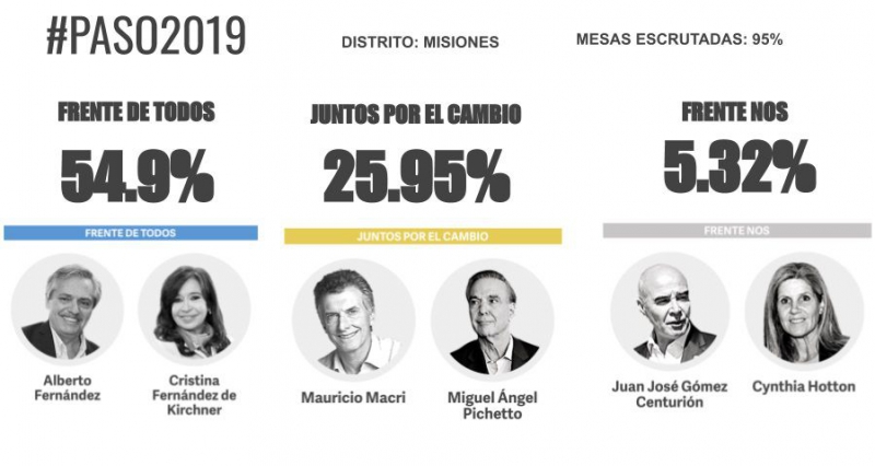 El frente ha tenido un sorpresivo desempeño durante las PASO, logrando el 2,64% de los votos y consiguiendo así hacerse un lugar en las próximas elecciones de octubre. Misiones (5,38%), Tierra del Fuego (4,80%), Chaco (4,80%) y Río Negro (4,57%) han sido las provincias donde han obtenido sus mejores resultados. Acorde al candidato a presidente, el motivo de su triunfo como tercera fuerza en Misiones se debe a que “la población pertenece al cristianismo y se encuentra en contra del aborto”.