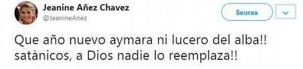 Comenzaba también a exhibir al mundo como el poder ahora era ejercido por alguien totalmente opuesto a las ideas del MAS: su ingreso al Palacio del Gobierno fue enarbolando una biblia en mano, posicionando el simbolismo religioso por encima de cualquier ícono indígena o de reivindicación de los pueblos originarios que se había establecido con Morales. No en vano, en redes sociales supo tildar de satánica a la celebración del año nuevo aymara, en un tweet rápidamente descartado una vez posicionada en el poder.
