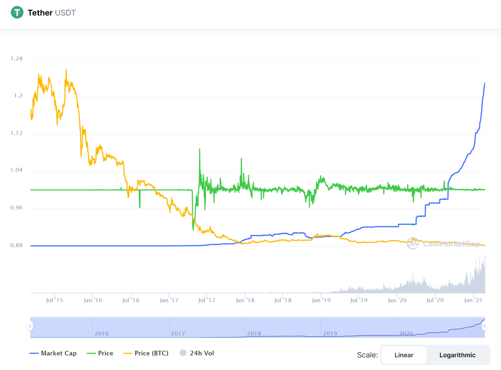 Al igual que PaxGold, Tether, posee un ratio 1 a 1 entre su activo digital y el activo del mundo real, el dólar. Por eso, su valor carece de fluctuaciones.