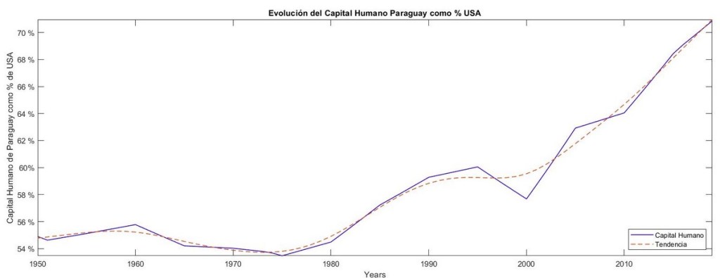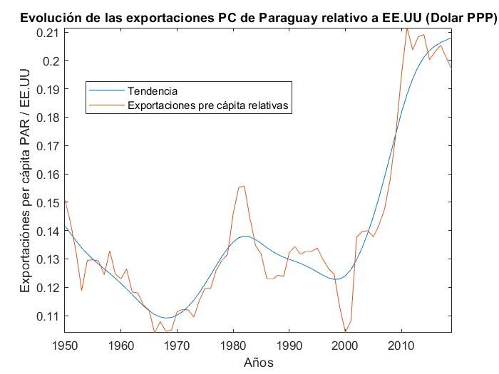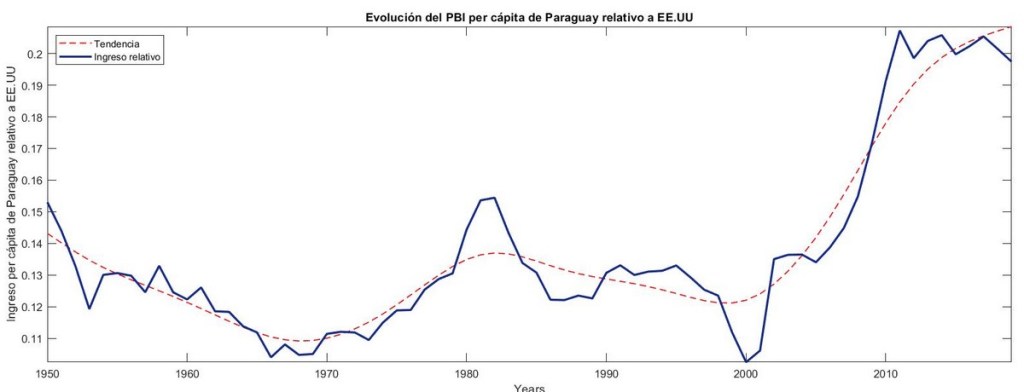 A su vez, durante este período, la productividad de Paraguay relativa a la de Estados Unidos comenzó a aumentar significativamente en conjunto con la tasa de inversión extranjera.
