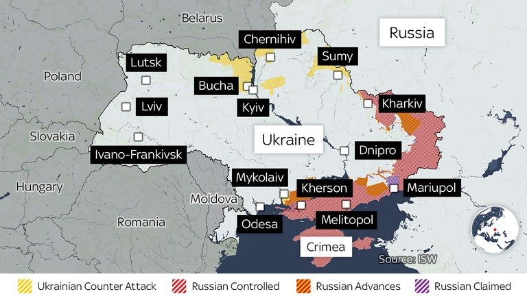 Asimismo, en la medida en la que las fuerzas ucranianas recuperan territorio, se observa que Bucha no fue la excepción en el accionar ruso, sino que podría ser la regla. La difusión de nuevas imágenes provenientes de la ciudad de Borodyanka, al noroeste del país, muestran otra masacre de civiles y particularmente de niños. Aún los datos exactos no se conocen, dado que continúa la búsqueda de individuos bajo escombros.