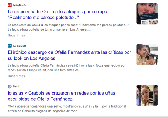 Titulares como los expuestos son algunos de los que se pueden encontrar sobre las mujeres que hoy protagonizan el escenario político del país. Como se demuestra, la discriminación de género no distingue grieta ni categoría, apuntan desde características emocionales como la sensibilidad hasta lo más superficial como que uñas llevan. Todos estos juicios de valor arremeten contra la igualdad de género, de nada sirve tener un cupo de participación política femenina abundante si se las sigue juzgando por nimiedades superficiales y poniendo en tela de juicio su capacidad para gobernar por seguir perpetuando estereotipos simbólicos de género.
