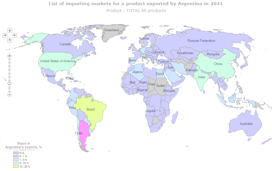 Hoy en día, China es el segundo destino para las exportaciones argentinas. De acuerdo con las herramientas del International Trade Centre (ITC), en 2021 las exportaciones de productos argentinos hacia Beijing alcanzaron un valor de $6,154,212 miles de dólares (USD), representando un crecimiento de 17% respecto al año anterior.