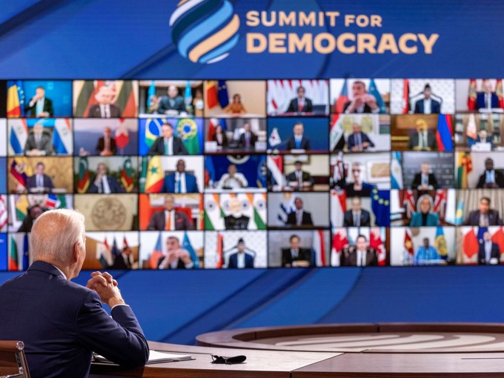 Hablando de diferenciarse, la propuesta parte por confrontar la importancia de la democracia ante los desafíos que presentan distintas autocracias a lo largo del planeta, ya sin el marco de la Guerra Fría vigente, y atender en simultáneo a las consecuencias de retos transnacionales como el cambio climático, la escasez energética, la seguridad alimentaria o el terrorismo, entre otros. Esta mirada estadounidense se opone de mínima al encuadre chino de Xi Jinping, tanto como al ruso de Vladímir Putin, reconociendo una suerte de tripolaridad que dista mucho de la habitual bipolaridad o unipolaridad hegemónica que disfrutara el país tras la caída de la Unión Soviética y por el lapso de dos décadas mínimo.